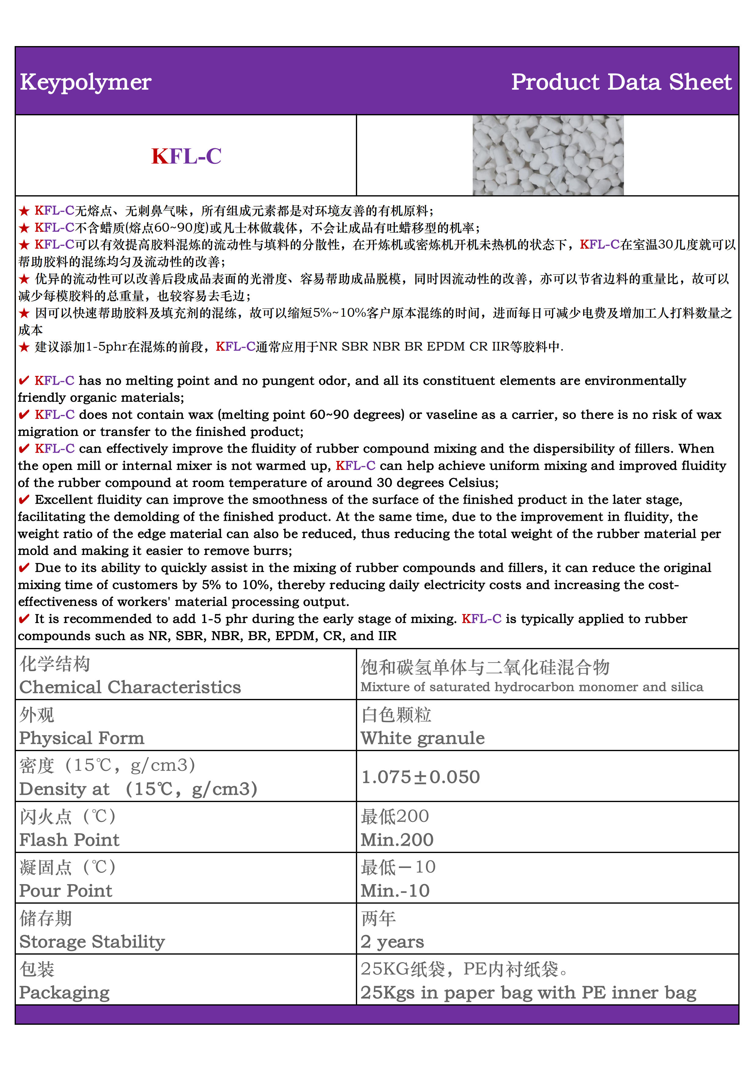 KFL-C Rubber compound flow, dispersion, and demolding aid